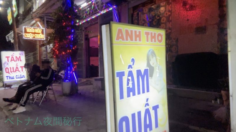 「KARAOKE」または「TẨM QUẤT(マッサージ)」の看板が出ています。