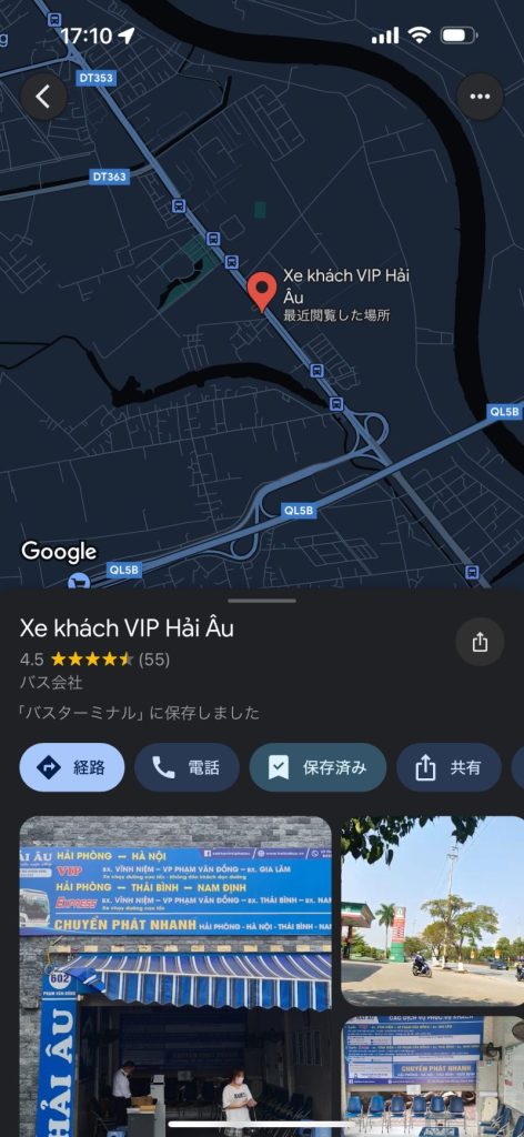 カウザオバスターミナルのない現在、ハイフォン中心部まで行かずに、高速道路入口近くにあるHAI AU社の事務所へ行くのがポイントです。