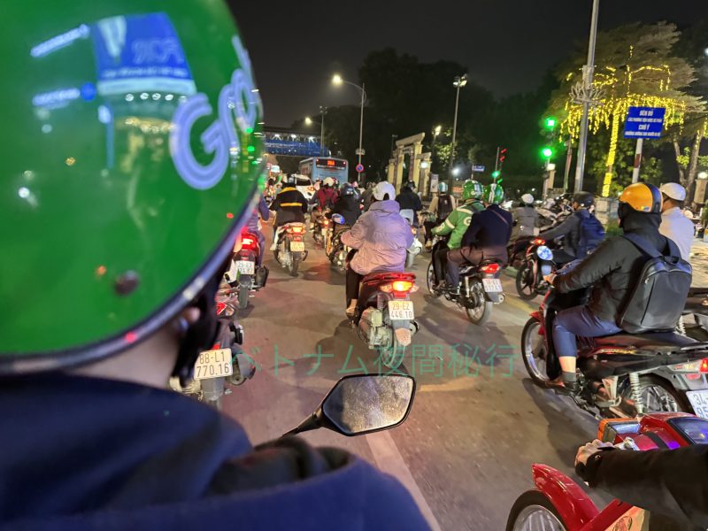 2023年12月某日21頃、私はハノイ旧市街からGrabバイクで線路置屋に向かいました。